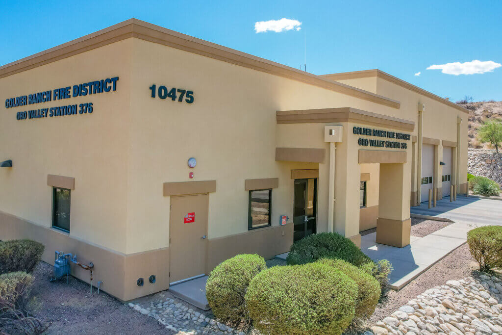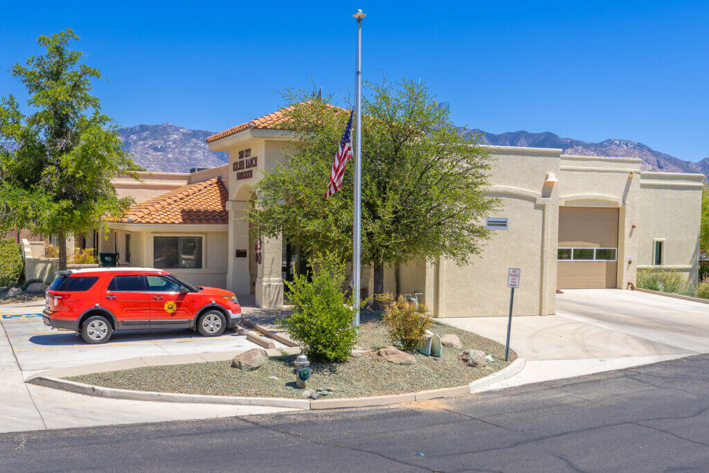 Located on Golder Ranch Drive, just east of Oracle, the Catalina Fire Station moved from its previous location on Hawser street in 2006 and is part of the campus where GRFD’s administration, fleet maintenance, and training buildings are located. The station houses an advanced life support engine and ambulance. Station 370 is headquarters for the north battalion chief. The District’s wildland team responds from this station as well. The primary response areas for this station include along Oracle from Innovation Park to SaddleBrooke Boulevard.